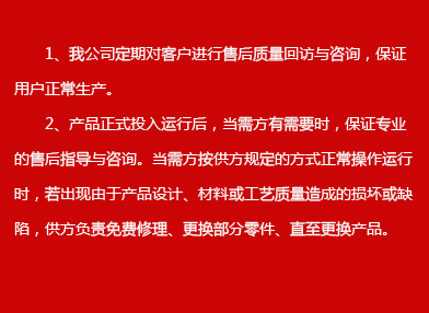 嚴格質量管理,完善產品售后服務是塑造企業形象、取信于用戶的根本。多年的實踐,公司形成了一整套行之有效的質量管理及售后服務管理體系,為此,公司鄭重承諾: